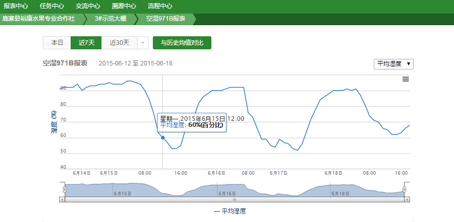 湿度对葡萄种植的影响也非常大,比如,葡萄园的空气湿度连续一周都超过80%,就需要注意葡萄是否会发生灰霉病等疾病。而慧云智能农业监控系统能够实时监测空气湿度,如果监测到葡萄园连续一周的空气湿度超过80%,就会给葡萄管理员发送预警,提醒他们注意预防灰霉病等疾病。