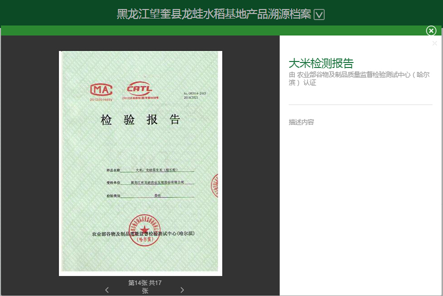 慧云农产品溯源系统,给每一袋龙蛙大米制作了自己唯一的身份(二维码),完整记录这袋大米的品种、产地、种植、收割、加工、仓储、质检等全部信息,消费者只要扫描产品二维码,就能快速地查看龙蛙大米的详细信息。龙蛙农业同时配合使用慧云智慧农业监控系统,在每一位龙蛙客户的手机里,都安装了慧云智慧农业云平台。从播种的第一天起,消费者就可以随时随地跟踪生产过程,通过农场视频、实时采集的种植环境数据,了解黑土地的土壤温度、空气湿度、光照情况、大米的长势,亲历生产全过程,真正做到全程掌控,提前预定,大幅提升用户粘性。龙蛙大米利用农产品溯源平台,在消费者和每一位龙蛙客户心中,建立并展示了绿色、有机、安全的良好品牌形象。