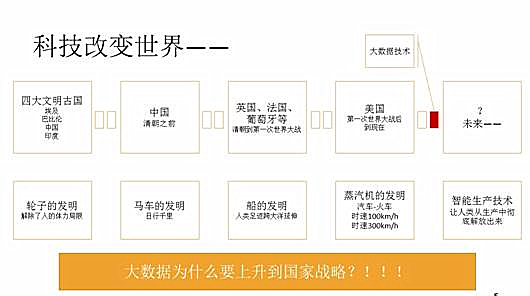这些关于大数据的理解都是正确的,但是我对大数据的理解会更加深入,因为我从事这个行业。我对大数据的理解是,大数据是一个新的概念,概念很早就提出了,2012年美国奥巴马成立了大数据研究院,中国从2014年开始,李克强总理开始推进中国大数据工作,把它上升到国家战略,这背后的原因是什么呢?我认为,世界是由科技改变的。