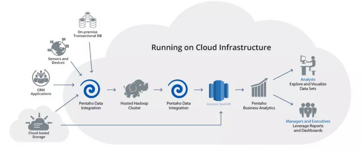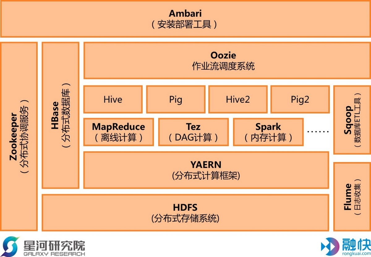 Hadoop功能包括从数据采集、存储、分析、转运、再到页面展示,完整涵盖了整个流程。例如HDFS实现了数据的分布式存储,HBase负责实现数据库的功能,Flume执行对数据的收集,Sqoop能够对数据进行转移、治理, MapReduce可以通过算法实现分布式计算,Hive则做数据仓库,Pig做数据流处理,Zookeeper实现了各节点间的反馈收集与负载平衡服务,Ambari能够让管理员了解架构整体的工作运行情况。