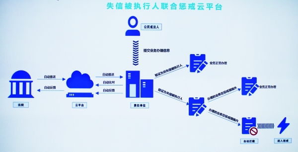 据贵阳市发改委相关负责人介绍,惩戒云平台将自动推送失信被执行人信息到各联合惩戒单位,各单位将失信被执行人名单信息录入单位的管理、审批系统中,实现对失信被执行人名单信息进行自动比对、自动拦截、自动监督、自动惩戒。