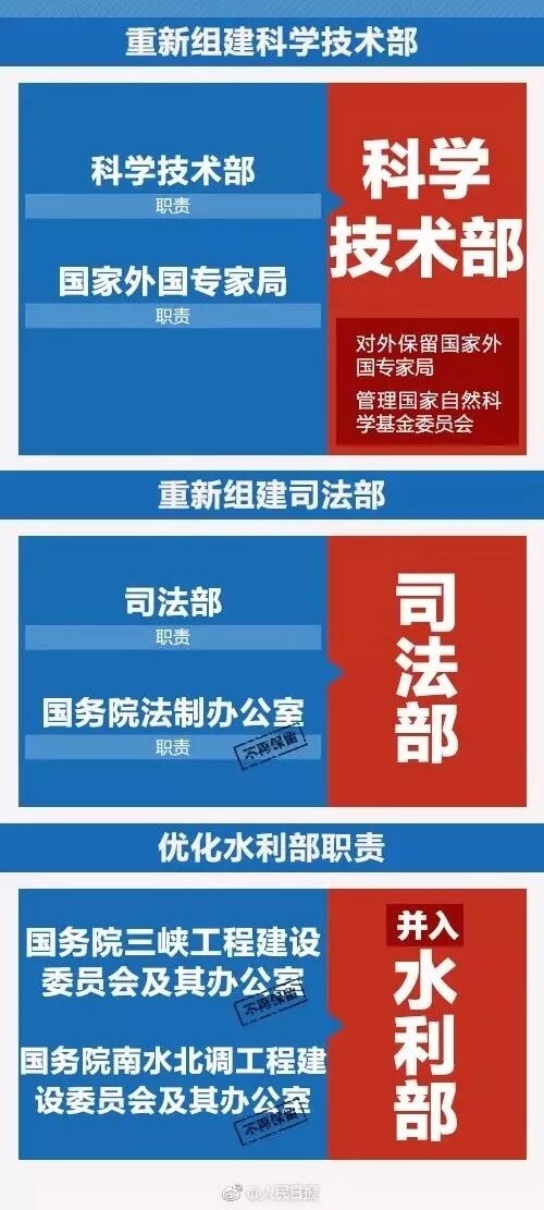 今天(13日),国务院机构改革方案提请十三届全国人大一次会议审议。根据该方案,改革后,国务院正部级机构减少8个,副部级机构减少7个,除国务院办公厅外,国务院设置组成部门26个。具体调整情况如下: