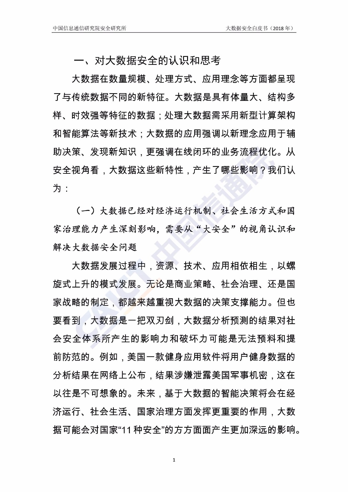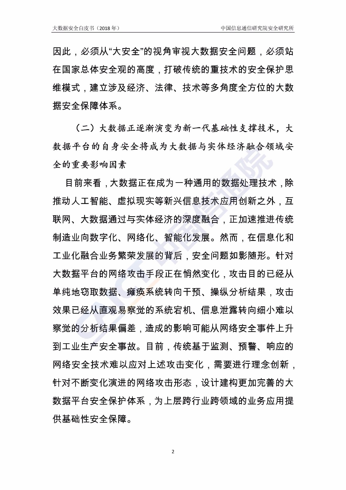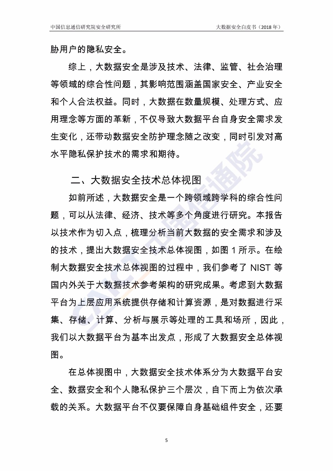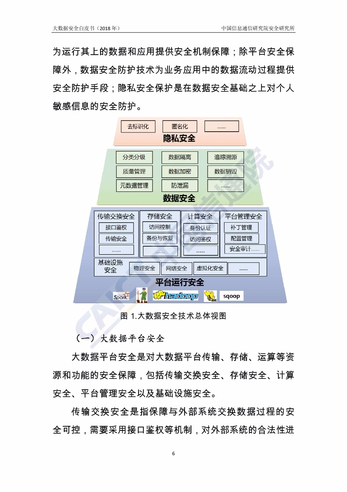 2018年7月12日,在2018中国互联网大会上,中国信息通信研究院(以下简称“中国信通院”)发布了《大数据安全白皮书(2018年)》。该书从大数据带来的变革作为出发点,探讨了大数据安全和传统安全的区别;然后聚焦技术角度,给出大数据安全技术总体视图,分别从平台安全、数据安全和个人隐私安全三个方面梳理了大数据环境下面临的安全威胁以及相应的安全保障技术的发展情况;最后基于大数据安全技术发展情况,提出大数据安全技术未来发展方向与建议,为大数据产业和安全技术发展提供依据和参考。