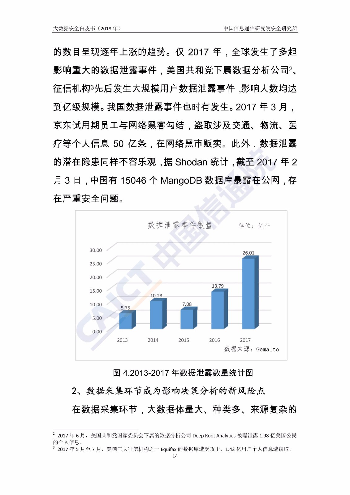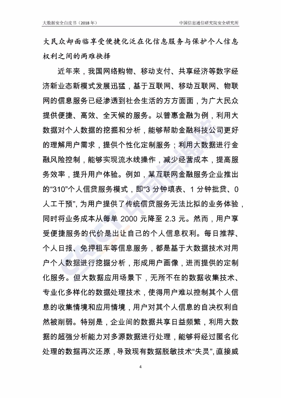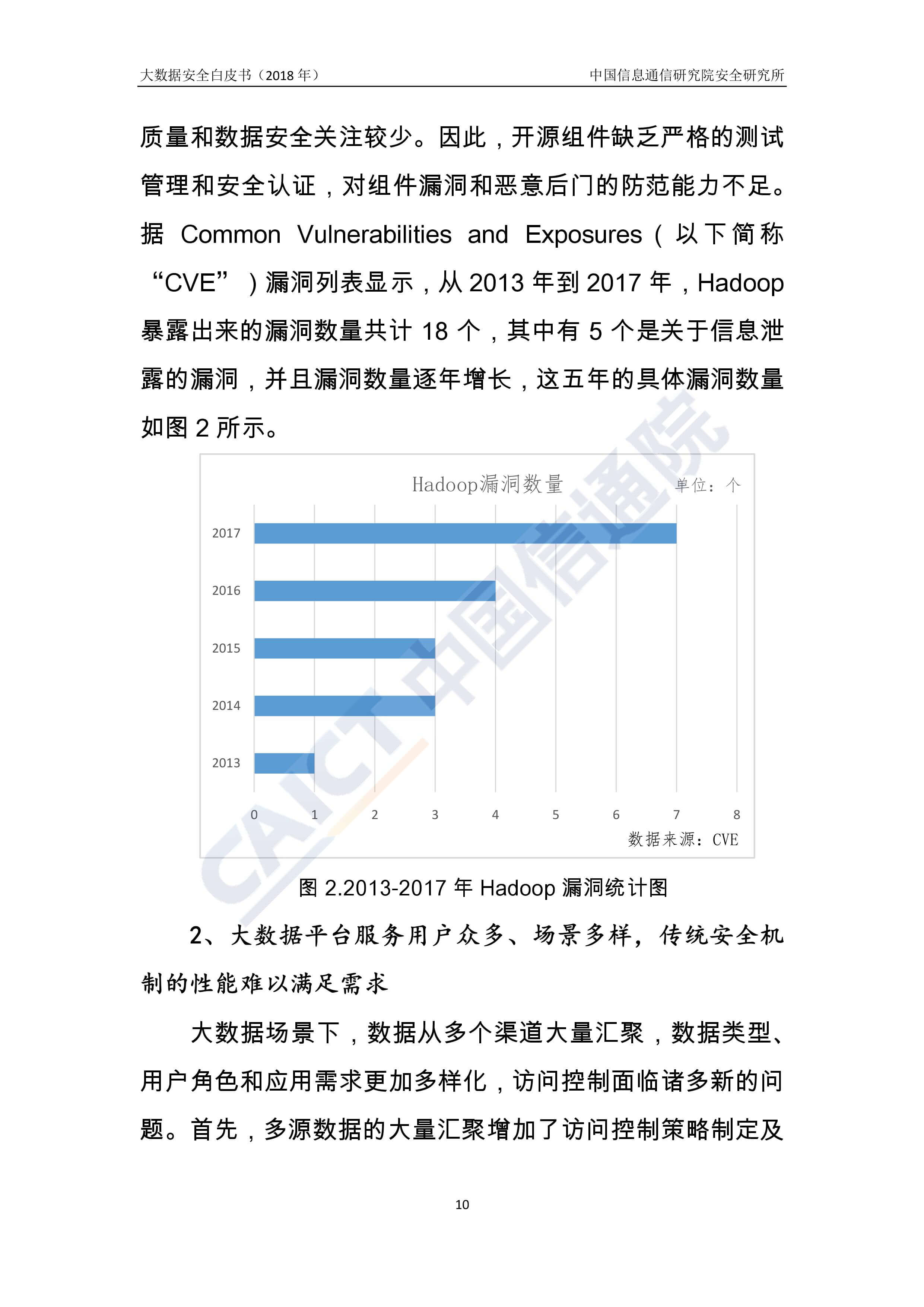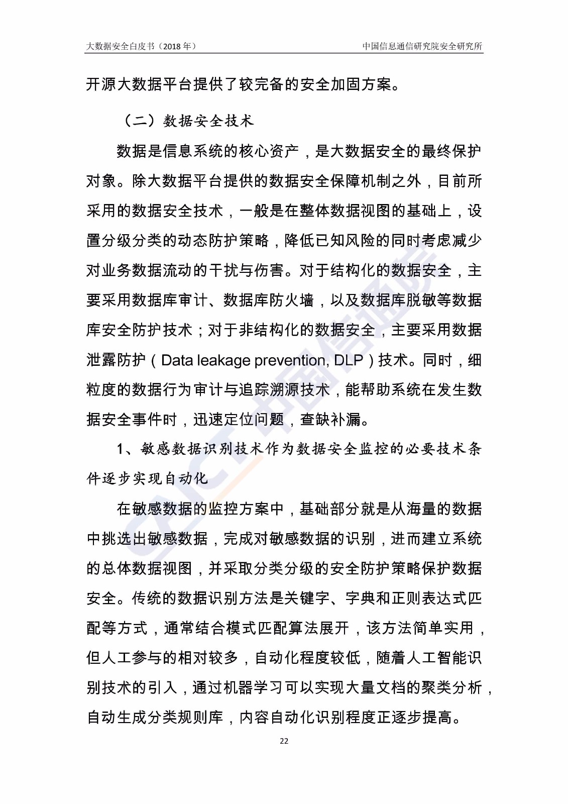 2018年7月12日,在2018中国互联网大会上,中国信息通信研究院(以下简称“中国信通院”)发布了《大数据安全白皮书(2018年)》。该书从大数据带来的变革作为出发点,探讨了大数据安全和传统安全的区别;然后聚焦技术角度,给出大数据安全技术总体视图,分别从平台安全、数据安全和个人隐私安全三个方面梳理了大数据环境下面临的安全威胁以及相应的安全保障技术的发展情况;最后基于大数据安全技术发展情况,提出大数据安全技术未来发展方向与建议,为大数据产业和安全技术发展提供依据和参考。