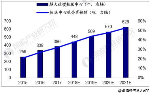 2015-2021年超大规模数据中心数量统计及增长情况预测