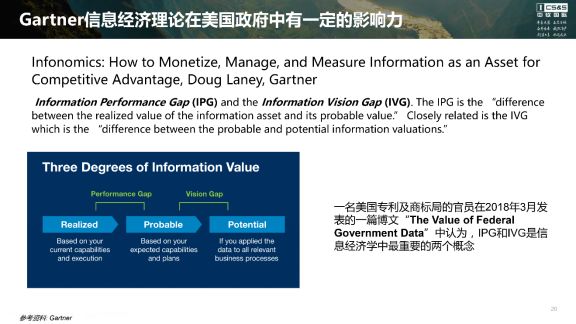 Gartner的数据价值评估方法论是其信息经济理论的一部分,在美国政府中有一定的影响力,其中的IPG和IVG被认为是信息经济学中最重要的两个概念。