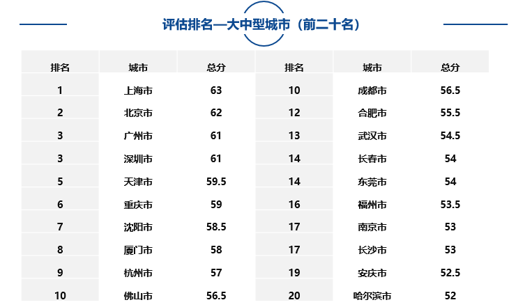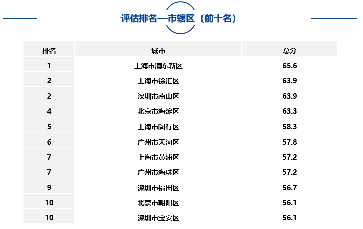 大中型城市、市辖区、自由贸易试验区中排名靠前名单如下: