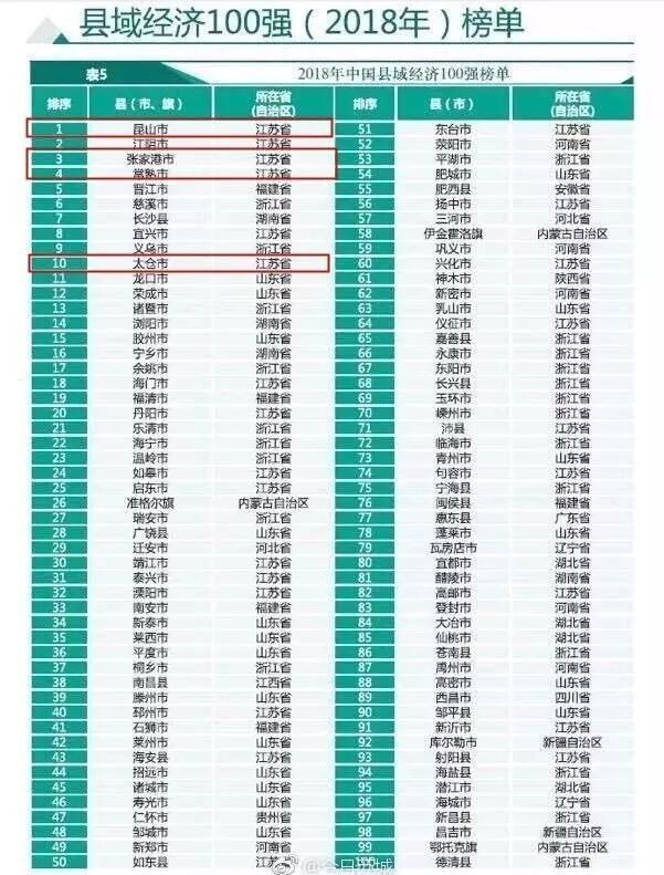 2018年中国县域经济100强榜单中,苏州一马当先,共有4个县市进入了前十。这经济发展实力,让人不得不佩服。