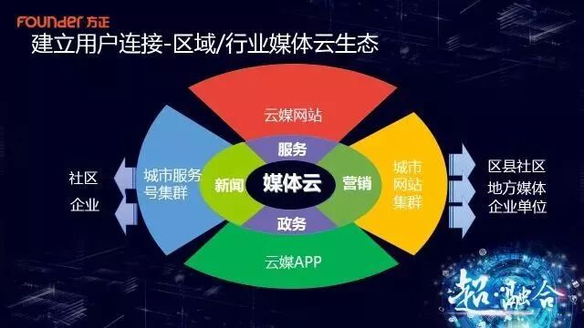近年来,方正电子在提供专业的解决方案的同时也逐步向平台化、服务化转变,与媒体、企业、政府和垂直市场客户开展服务和合作。过去方正电子承担了全国绝大部分报社的内容资源建设,使报社拥有了数据资产,未来方正电子将全力协助报业打造媒体数据市场,鼓励用户承接政府项目及服务,建设区域或垂直市场媒体云等业务,多维度、多批次建设与用户的有效连接,获得内容和用户数据的新补给,构建媒体大数据生态。例如我们给杭州日报在建的杭州媒体云, 给梧州日报建设的梧州云,为经济日报建设的数据服务平台,为中国石油报建设的油立方,都是在区域和垂直市场构建云生态。