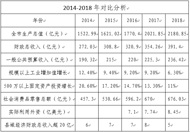 ● 全市生产总值2180.85亿元、増长8.1%。财政总收入391.4亿元、増长10.4%,其中一般公共预算收入236.42亿元、增长4.9%。