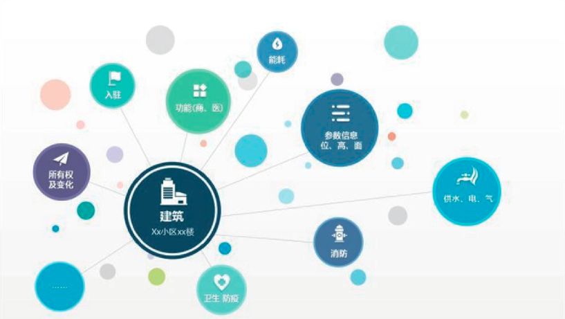 (3) 事物360, 以事物为中心的全方位数据和信息。该“事物”具有泛指概念, 包括所有非人类属性的其他物理实体, 如车辆、建筑、自然地理 (如河流、湖泊、道路) 资源等。包括民生或生活参数, 所有权权属变化, 功能属性 (如建筑物的使用用途) , 城市管理相关信息 (如建筑物的消防, 卫生防疫, 交通) 等。如图2所示。