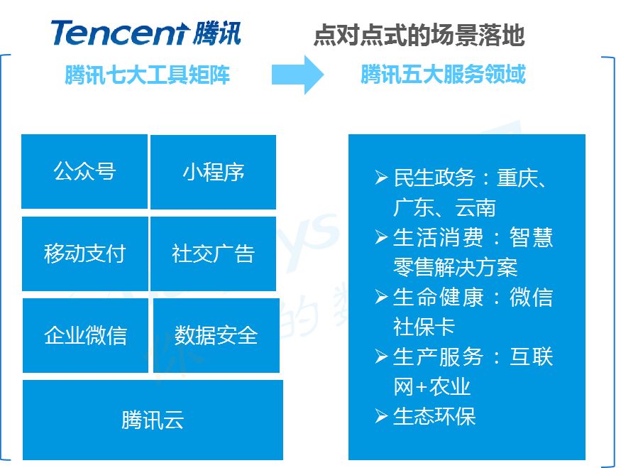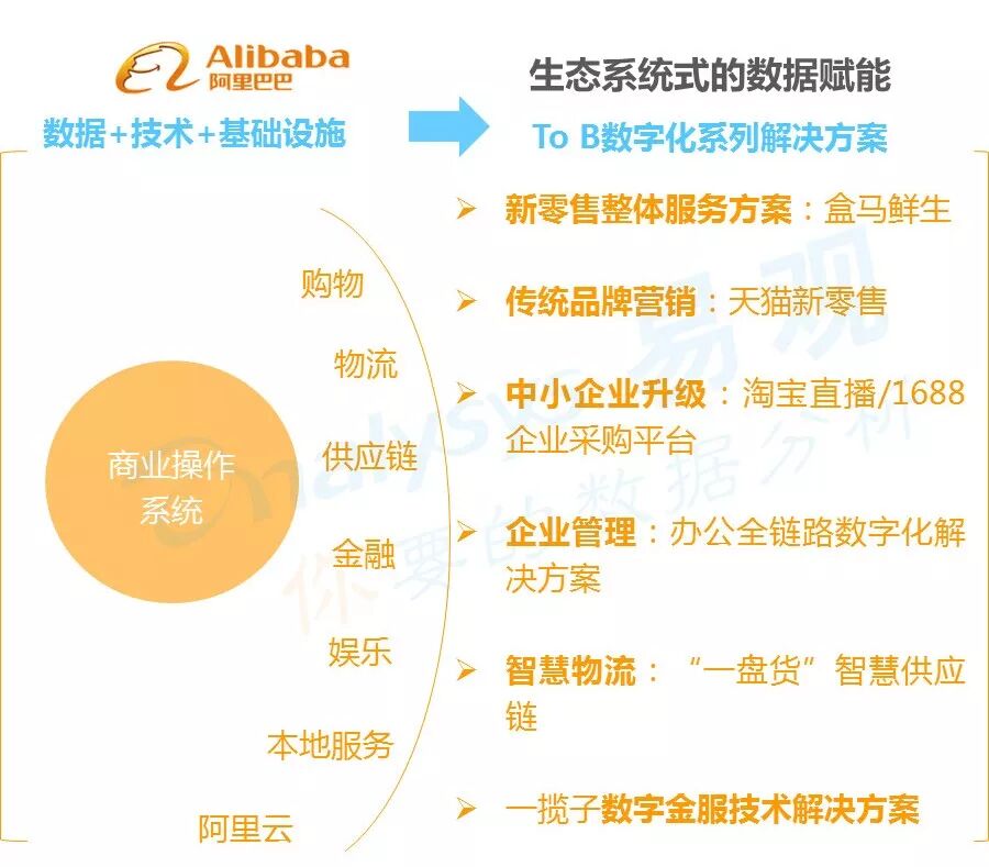 巨头阿里巴巴、腾讯在互联网时代所积累的平台经验和数据优势将在数字化时代持续发挥效能,助推其从服务C端过渡为服务B端+C端。其中,阿里巴巴的优势在于消费及金融层面相对成熟的生态化服务能力,协同性更强;而腾讯的微信生态则更适于面向政府、零售等领域赋能,目前而言场景相对有限。