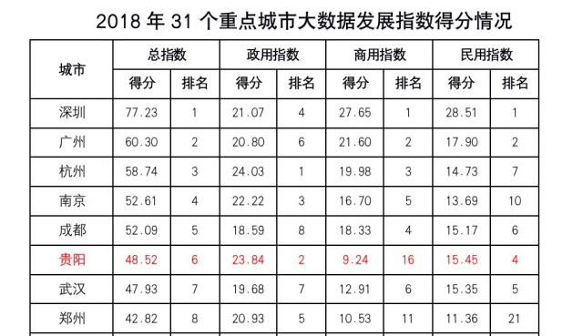 最新发布的《大数据蓝皮书:中国大数据发展报告No.3》公布了中国31个省份“大数据发展指数”得分与排名情况。北京、广东、浙江、上海和贵州分别位列大数据发展指数排名的前5位,大数据发展状况处于全国前列。