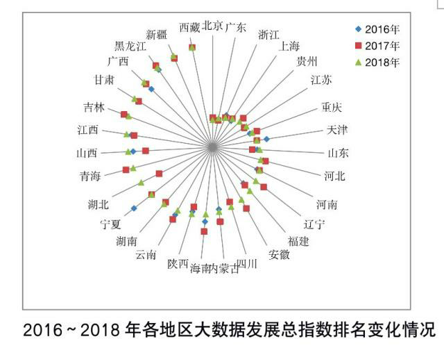 蓝皮书由大数据战略重点实验室与社科文献出版社共同发布。课题组对31个省份的大数据发展指数和政用、商用、民用三个分指数得分情况进行综合分析,依据不同的特点划分为六类大数据发展类型,分别是:全面领先型、相对均衡型、低度均衡型、政府主导型、商用主导型、民用主导型。据2018年各地区大数据发展类型划分结果显示,北京、广东、上海大数据依然属于全面领先型,其大数据发展优势明显。