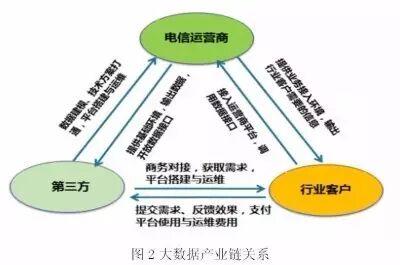 运营大数据平台,电信运营商可以提升大数据产业链的地位,并获得新的收入来源,包括数据存储租金、数据交易手续费,以及电信数据能力变现收入;同时,电信运营商还能通过共享和数据交易,获取其他行业的数据,服务于自营业务,甚至有可能基于多样化的数据形成新的创新业务。作为第三方,为深度嵌入行业客户的业务价值链,运营商采取深度合作运营的模式:即第三方与运营商形成战略合作关系,在运营商的数据环境下,搭建开放的数据挖掘平台,运营商输出数据、提供存储能力和计算能力,第三方公司在这个平台上进行数据挖掘建模与数据产品加载工作,数据建模成果、数据产品应用输出的收益由运营商和第三方公司共享(见图2)。
