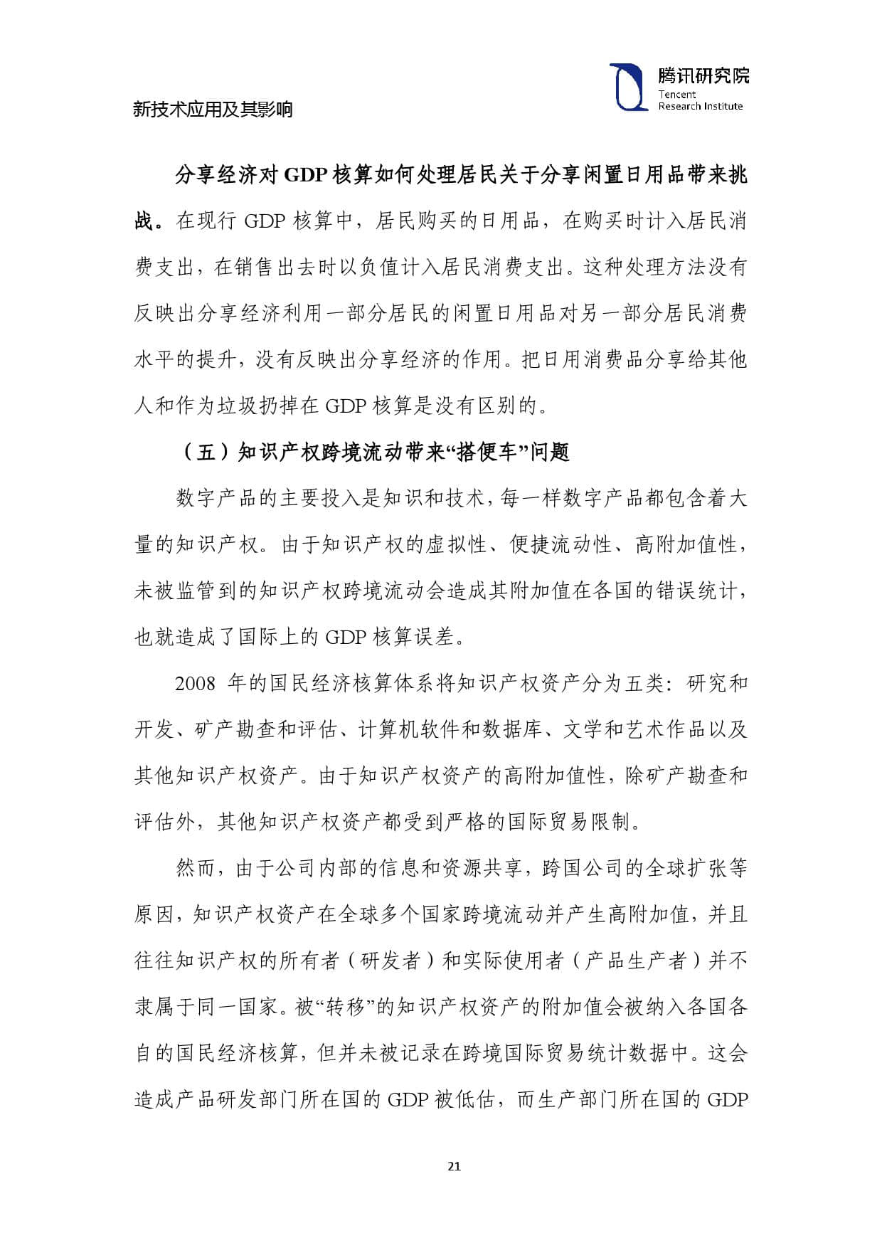 数字产品的主要投入是知识和技术,每一样数字产品都包含着大 量的知识产权。由于知识产权的虚拟性、便捷流动性、高附加值性, 未被监管到的知识产权跨境流动会造成其附加值在各国的错误统计, 也就造成了国际上的 GDP 核算误差。