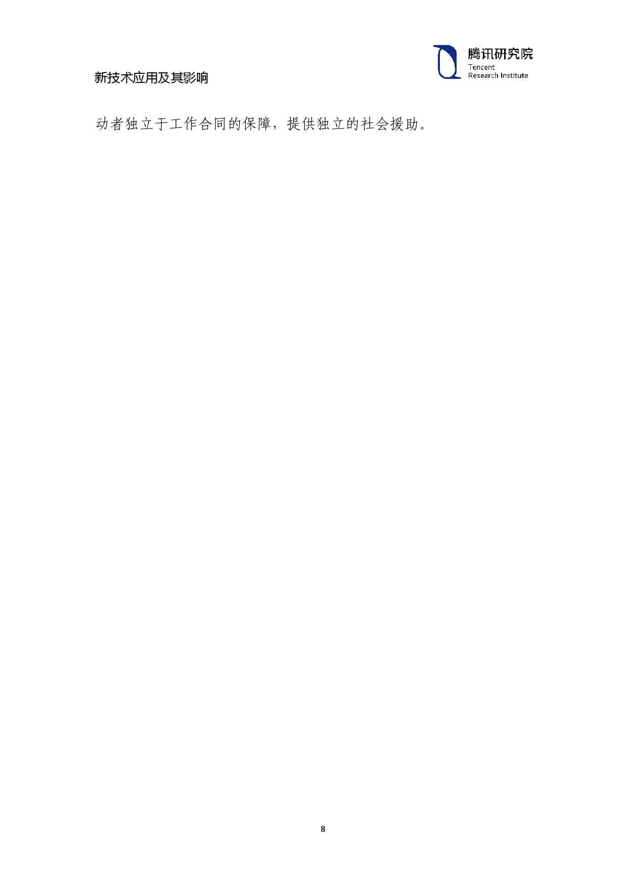 数字技术变革速度快,所需的技术种类也在快速变化,因此劳动者需 要在整个职业生涯中不断更新数字经济所需技能。在此方面,政府可 以提供激励,让企业和劳动者建立终生学习的机制。同时,面对劳动 市场的变化,政府也需完善社会保障和征税体系。数字经济催生了更 多非正式就业,保险及职业责任转嫁给了自由从业者。政府要加强劳动者独立于工作合同的保障,提供独立的社会援助。