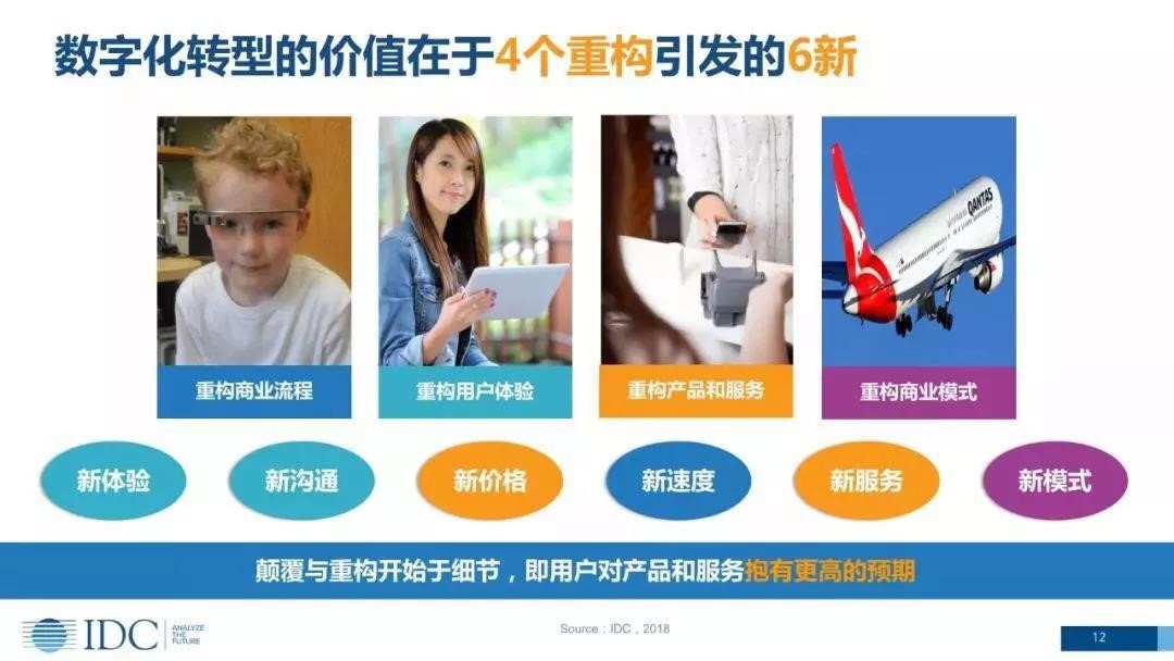 IDC认为数字化转型带来的价值在于四个重构,以及四个重构带来的六新。