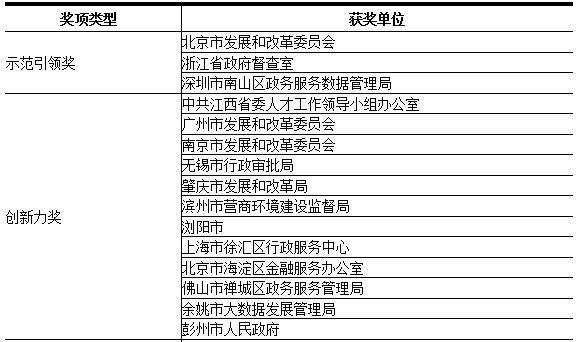 附1:第二届(2019)中国营商环境特色评选获奖单位