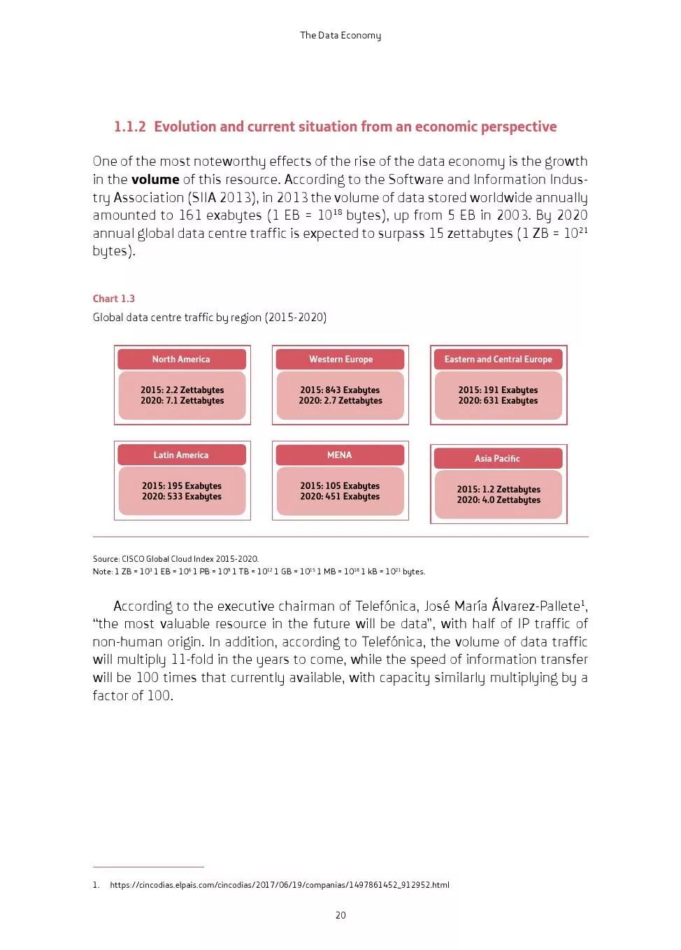 根据Telefónica执行主席JoséMaríaÁlvarez-Pallete1的说法,“未来最有价值的资源将是数据”。未来几年数据流量将增加11倍,而信息传输速度将是目前速度的100倍,容量同样乘以100倍。