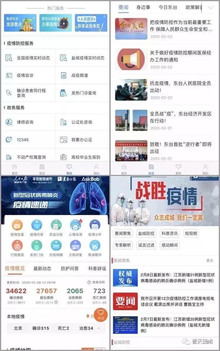 中国普天所属的普天智慧城市投资江苏有限公司积极响应江苏东台市号召,运用信息化手段全力保障社区基层疫情防控工作。自2月1日开始,东台市民只要登录移动智能门户“智慧东台”APP,就能在线了解全国疫情实时动态查询、盐城疫情实时动态查询、疫情自诊、战疫频道、确诊患者同行程查询、发热门诊查询等服务。