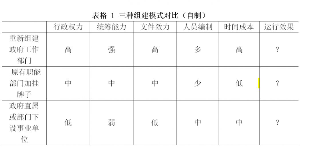 从大数据局肩负的使命以及三种组建方式的对比来看,将大数据局定位为政府工作部门无疑是更好的选择。然而由于各地在经济基础、领导态度、技术条件及文化传统等方面因素上都具有较大的差异,单纯的基于案例的比较研究有可能遗漏了大量的控制变量,加之各地大数据局的工作几乎是刚刚起步,所以三种组建方式带来的运行效果仍未可知,这也给后续的基于定量方法的实证研究留足了空间。