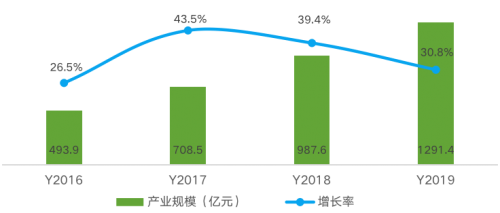 据赛迪顾问研究数据显示,2019年中国人工智能产业以较高的增速发展,产业规模达到1291.4亿元,同比增速为30.8%。