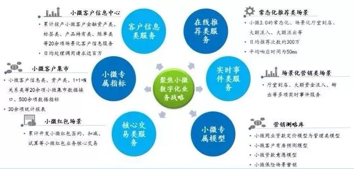 小微3.0新模式是民生银行积极推进改革转型战略级项目,全技术架构实现中台化,借助业务中台和数据中台提供的能力,完成常态化产品推荐、场景化产品推荐、厅堂服务、收单结算、大额流入与流出营销、在线抵押贷款、小微红包、小微账单、有贷户综合营销等多项业务领域创新性应用的落地,做轻业务前台、做强中台的中台体系架构试点取得成功。