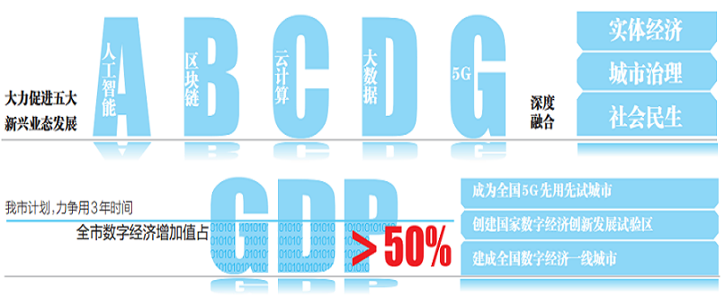 2019年,全市数字经济增加值占GDP比例40%左右,在全国排在前列