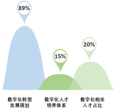 一是转型人才欠缺。根据数据统计,当前企业均认识到数字化转型的重要意义,有89%的中小企业针对数字化转型发展进行规划。在数字化转型人才方面,企业中数字化相关人才平均占比仅为20%,15%的企业建立了数字化人才培养体系。可见,人才培养机制不健全是阻碍企业转型的一个重要因素。