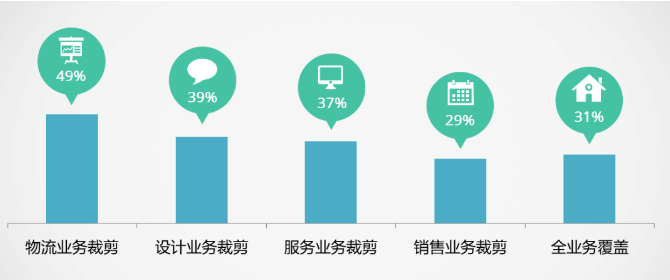 统计结果显示,仅有31%的中小企业能够覆盖设计、生产、物流、销售、服务等产品全生命周期,中小企业对于设计、物流、销售和服务业务大多采用外包方式,主要将资金和人才的投入聚焦在生产业务环节,专注于细分市场,将提高专业化生产、服务和协作配套的能力作为企业发展的核心。