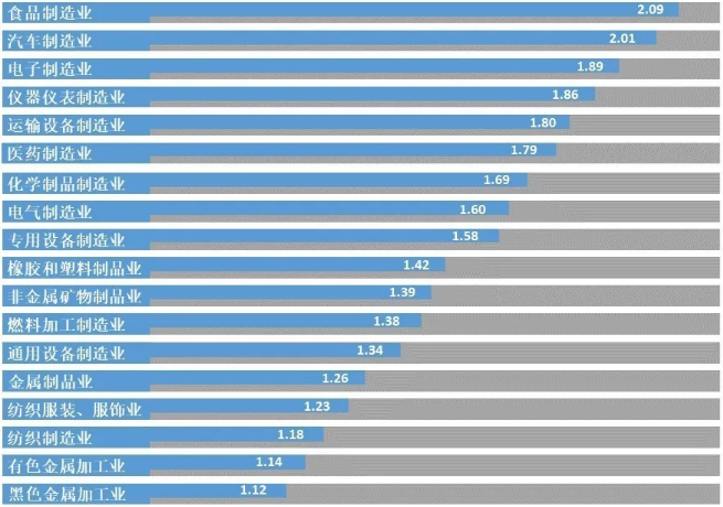 食品、汽车、电子、仪器仪表、运输设备、医药等行业领跑全国