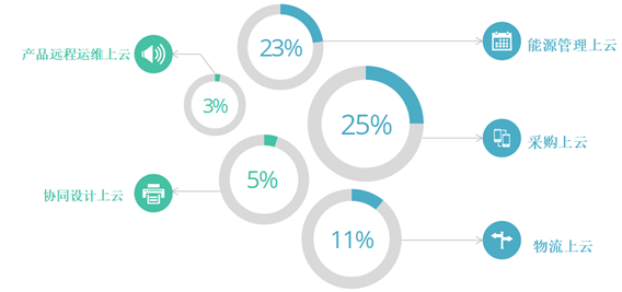 二是企业间的协同能力薄弱。根据数据统计,25%的企业应用了采购云平台、23%的企业能源数据实现上云管理,在物流、产品远程运维和协同设计等业务云平台应用程度较低。