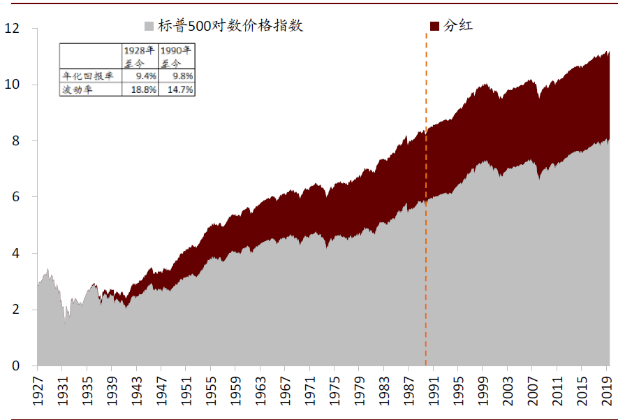 图表: 1990年以来标普500指数的收益特征与近百年没有显著差异