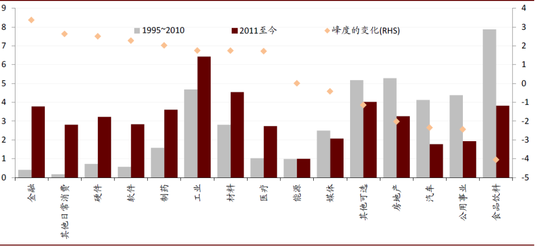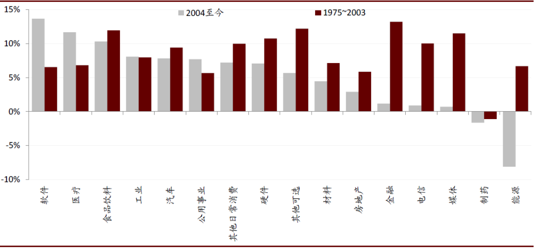 6) 美国市场中,数字经济发展可能加剧劳动收入分配比例的下滑,收入分配可能更有利于高收入群体,对可选消费更有利,可选消费可能会优于必选消费。美国股市可选与必需在这一期间的相对表现也与这一推论基本吻合。