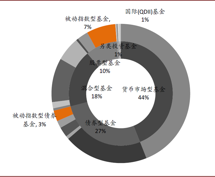 图表: 2019年底,中国共同基金结构:ETF占比10%