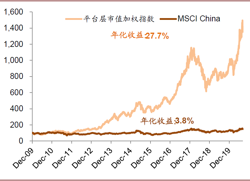 ► 数字经济中的平台仍在不断延伸,行业界限更加模糊。除了数字渗透率在全社会进一步提升可能会提升数字经济相关板块在股市的市值占比外,数字经济中的平台经济,基于网络效应、规模效应、范围经济、非竞争性等特征,也在不断延伸触角。比如,腾讯最开始是社交平台,但这一平台基于社交关系,将人的各类日常活动通过社交关系深度绑定,已经延伸至几乎包括个人大部分日常活动的跨行业平台。在这一平台中,行业的界限已经不再清晰,以至于腾讯到底是互联网企业,还是实体经济企业,已经较为模糊。同样的例子也适用于阿里、京东、美团等平台。