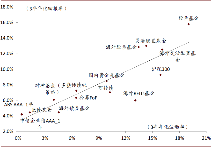 资料来源:万得资讯,Preqin,Eurekahedge,中金公司研究部 注释:FoF数据起始日期为2017年12月,PE数据为起投日期在2004年~2014年的基金IRR;非标债权的收益率以非证券投资信托代替、波动率=参考申万银行指数波动率x银行风险资产加权系数中一般企业债权权重100%/对金融机构的股权投资权重250%