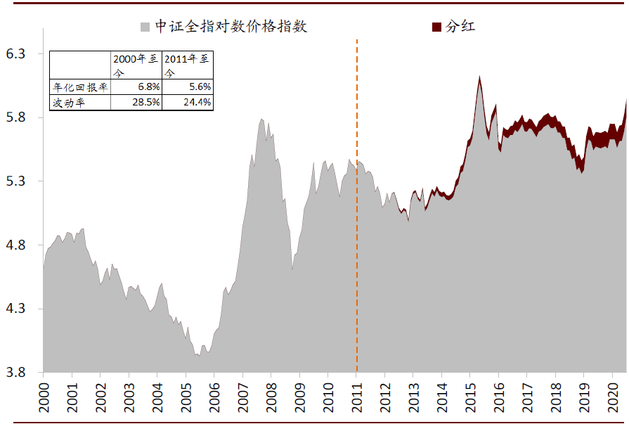 图表: 2011年以来中证全指的整体收益相比此前甚至出现了一定的下降