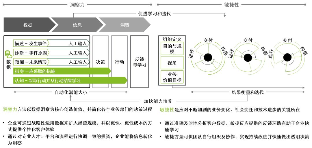 洞察导向是以数据洞察为核心创造价值,并简化各个业务部门的决策过程。组织可通过战略性运用数据来扩大经营规模,并以更快的速度、更低的成本提供个性化客户体验。通过对专业人才、平台和流程进行协调一致的投资,将信息转化为洞察。