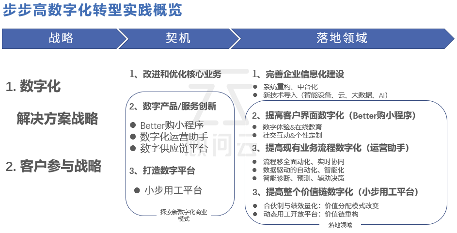 我们最初设想是从线下实体店的用户购买体验开始,然后过渡到线上交易平台,最后到数字化运营,包括用户运营、门店的数字化运营、供应链运营。但在实践过程中,步骤仍有所调整,数字化运营更加提前了。