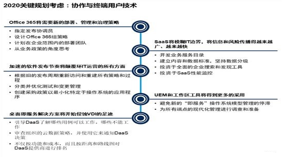 端点部署和管理的过程正在经历一次戏剧性的重新检查。使用各种端点管理工具的策略正在让位于统一端点管理(UEM)。UEM提供了一种单一的管理方法,而不管端点是PC、平板电脑、手机、可穿戴设备还是其他什么。这种地震性的转变将需要大多数组织花费数年时间才能完成。它将带来剧烈的政策和流程变化,这些变化将改变它与最终用户的交互方式。随着数据和应用程序转移到云端,Windows会变成什么样子?虽然Windows特定的应用程序正在减少,但它们还没有濒临灭绝,而且不会持续很长时间。IT组织仍然必须交付这些应用程序,而且许多人正押注桌面即服务(DaaS)来满足这一需求。