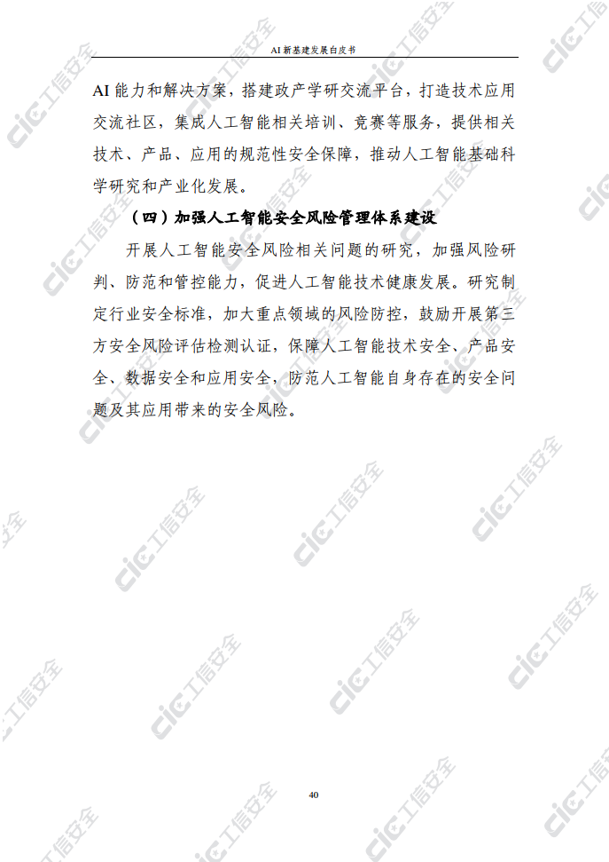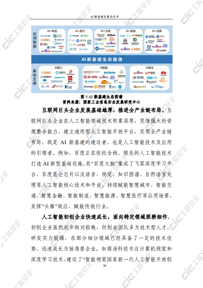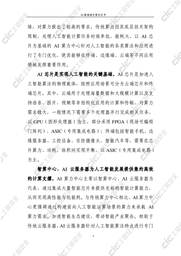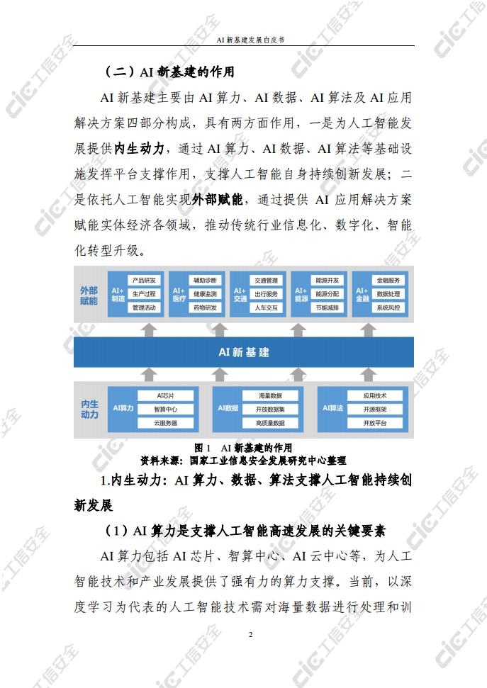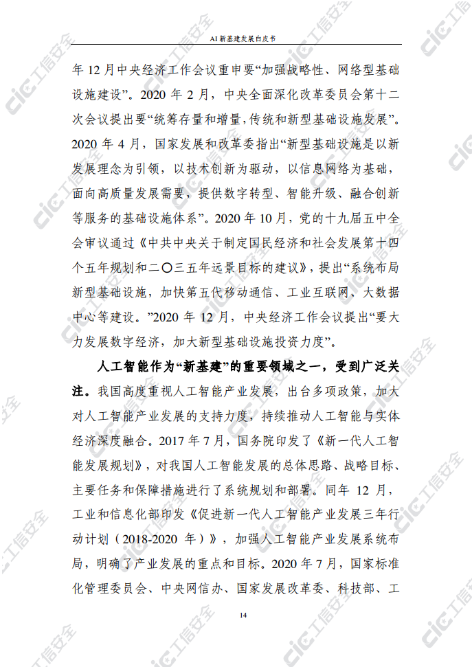 在此背景下,国家工业信息安全发展研究中心在跟踪积累和广泛调研的基础上,编写了《AI新基建发展白皮书》(以下简称“白皮书”)。白皮书梳理了AI新基建的概念内涵、基本属性、主要作用,探究了AI新基建的总体态势及发展现状,剖析了AI新基建发展面临的挑战并提出对策建议,旨在为各界推动AI新基建发展提供决策参考。