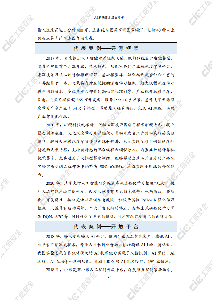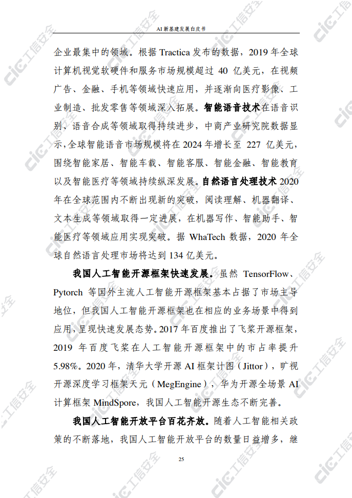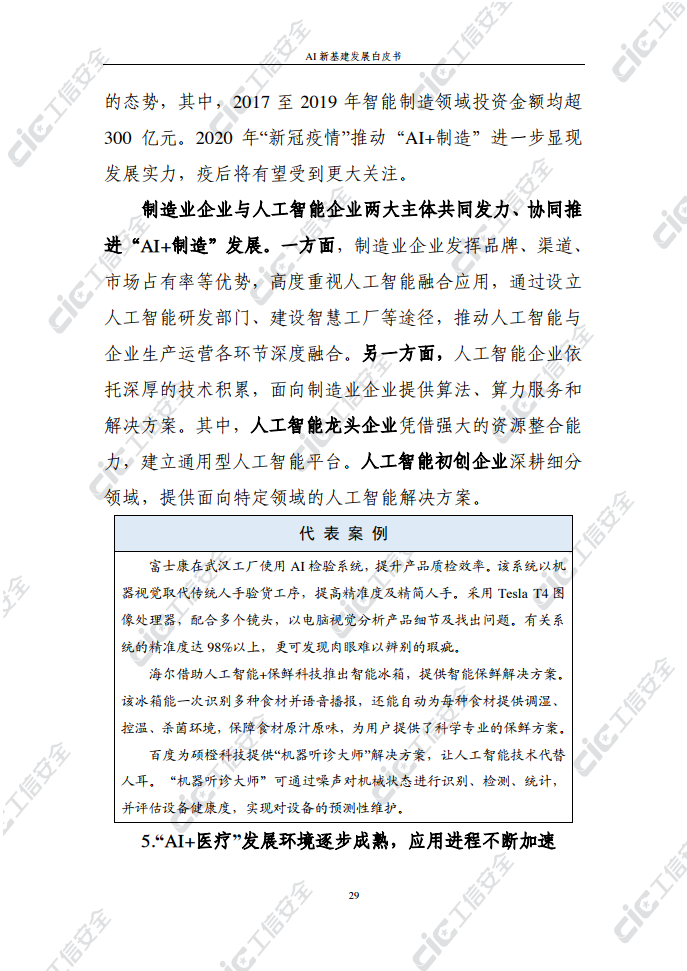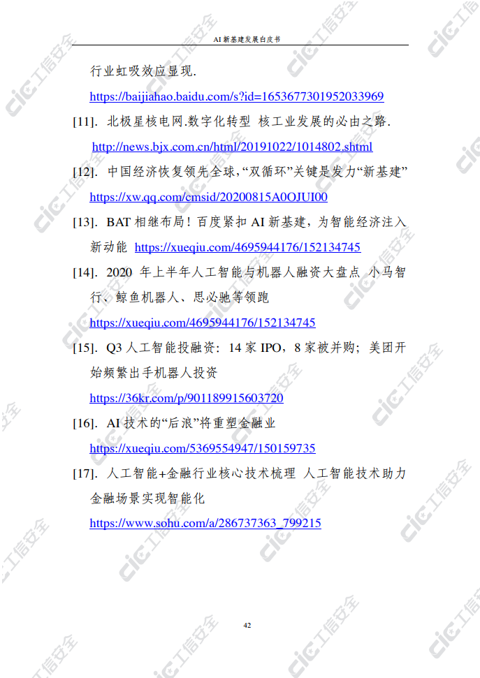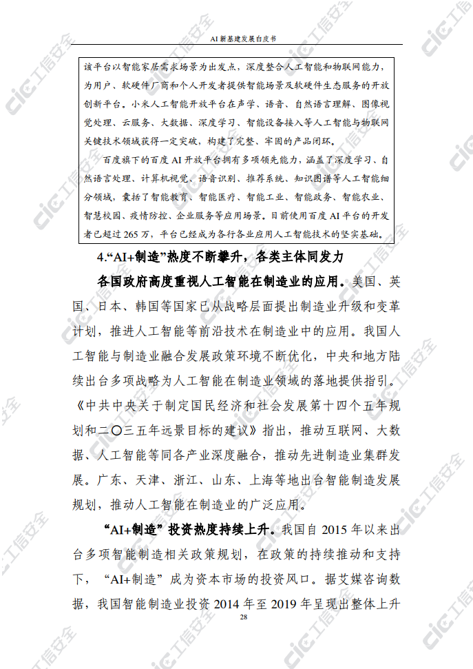 在此背景下,国家工业信息安全发展研究中心在跟踪积累和广泛调研的基础上,编写了《AI新基建发展白皮书》(以下简称“白皮书”)。白皮书梳理了AI新基建的概念内涵、基本属性、主要作用,探究了AI新基建的总体态势及发展现状,剖析了AI新基建发展面临的挑战并提出对策建议,旨在为各界推动AI新基建发展提供决策参考。