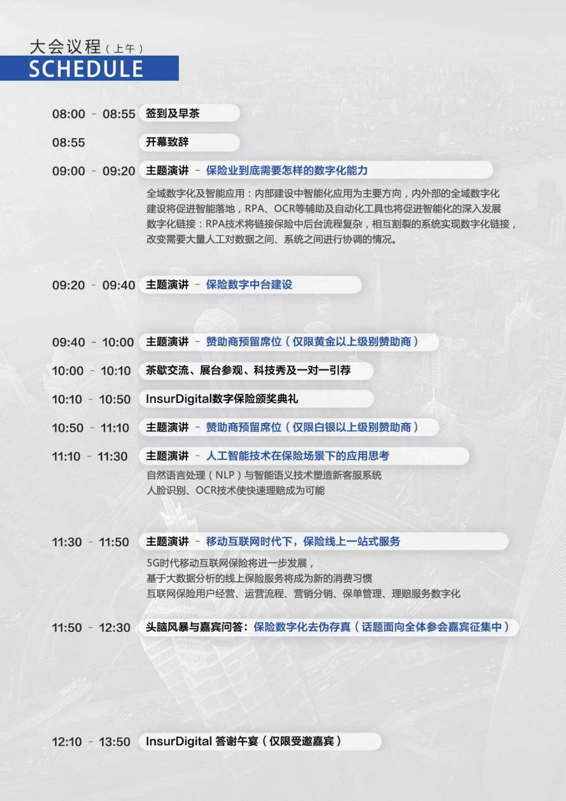 如您意向在大会上发言,申请InsurDigital数字保险创新大奖,参加午宴或有其他与会需求,欢迎与我们联系。
