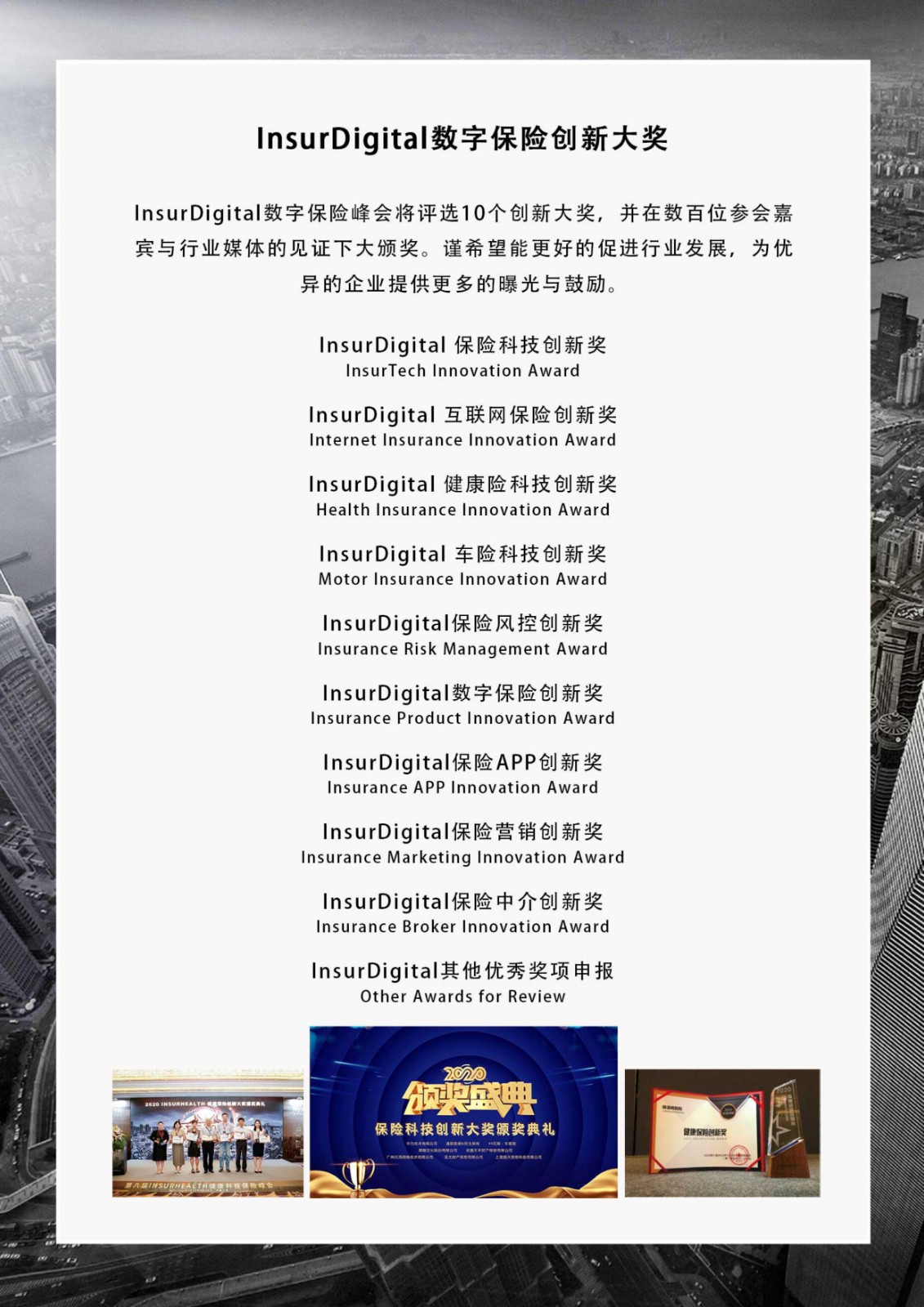 活动为每家保司提供10个免费参会席位。同时本次峰会还将在百余家银行嘉宾的见证下将颁发10大InsurDigital数字保险创新大奖。