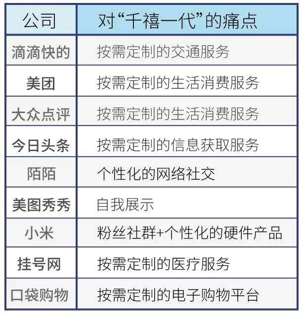 近年崛起的互联网新秀中,不难发现,其核心产品和服务的创新,基本上都围绕着“千禧一代”的消费痛点所