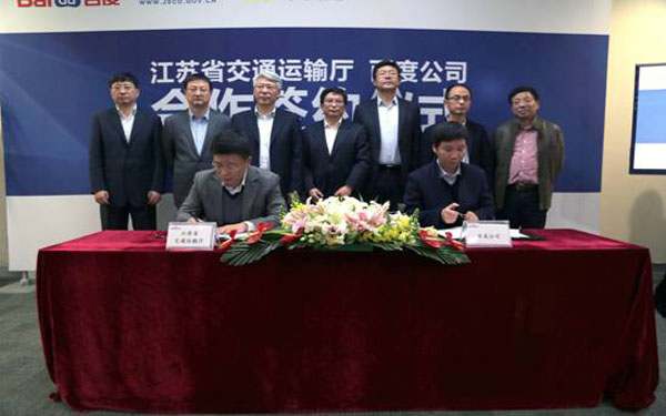 签约仪式上,江苏省交通运输厅与百度公司明确了四大合作方向:开展江苏省交通出行相关数据资源的共享交换、优化完善江苏交通出行信息服务系统、开展交通大数据分析服务建设、开展交通信息化项目的合作研究。