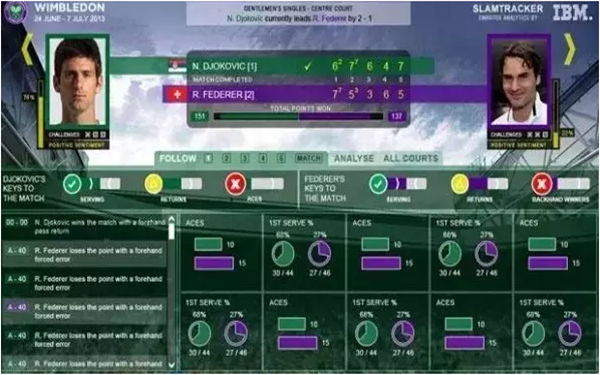 早在1980年代,IBM大数据就开始与网球四大满贯赛事签约,成为其赛事数据分析的供应商。凭借着IBM出色的大数据技术,四大满贯赛事在当时便拥有着最先进的比赛分析系统。2000年以来,两者的合作更紧密,覆盖了大部分职业网坛赛事。