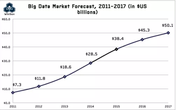 图1. 美国大数据行业市场的预测。来源:Wikibon